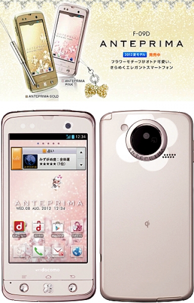 Fujitsu präsentiert in Zusammenarbeit mit dem japanischen Luxus-Label *Anteprima* das stylische Ladyphone F-09D! Das exklusive Android-Smartphone ist mit tollen LED-Lichteffekten (23 Farbkombinationen!)- sowie einer IPX5/8-Zertifizierung (staub/wasserdicht) ausgestattet. Die Bedienung erfolgt komfortabel über ein 3.7"-grosses WVGA TFT Touchscreen-Display und wird durch einen stylischen - im Lieferumfang enthaltenen Eingabestift - optimal ergänzt. Für Bild- und Filmaufnahmen steht eine hochwertige 8 Megapixel-Kamera mit HD-Funktion (720p)- sowie eine praktische Front-Kamera (1.3MP) zur Verfügung. Weitere Features wie ein microSD-Kartenslot (max. 32GB) und die Schnittstellen USB, Bluetooth & WLAN komplettieren das umfangreiche Angebot. Besonderes Extra nebst tollen LED-Lichteffekten - Ein Wireless-Ladesystem! Das F-09D Anteprima - Ein weiteres, top-exklusives Android-Ladyphone mit garantiertem WoW-Effekt von Globalplayer Fujitsu! In den Farben pink und gold erhältlich.